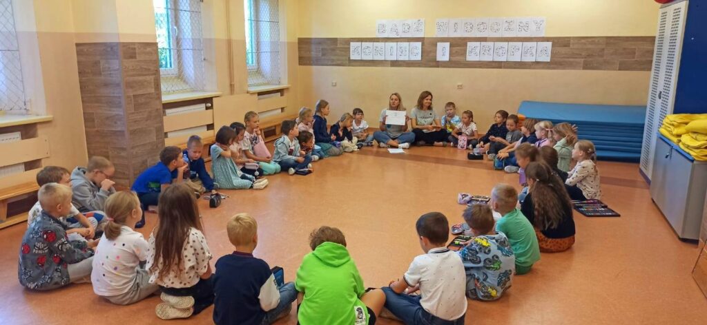 Na zakończenie każdy uczeń otrzymał odblask w kształcie kropki – bo żeby być bezpiecznym, trzeba być widocznym… i kropka! 🔵🦺