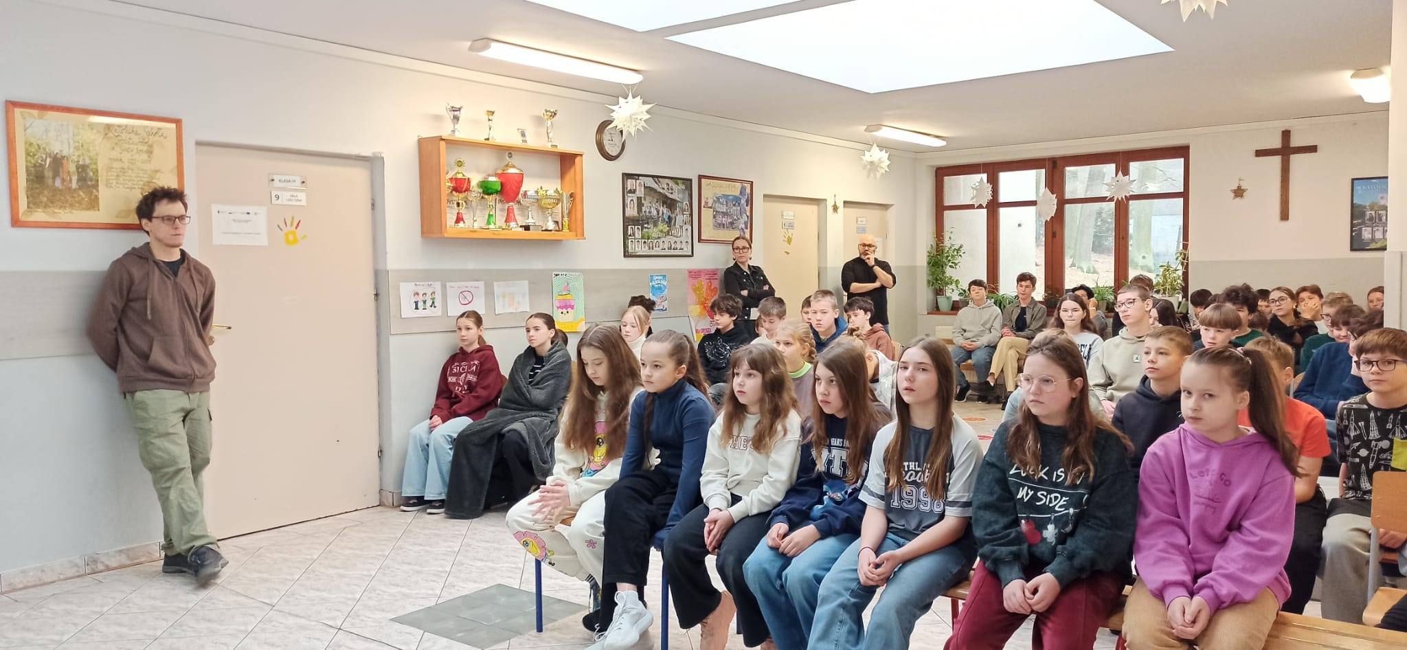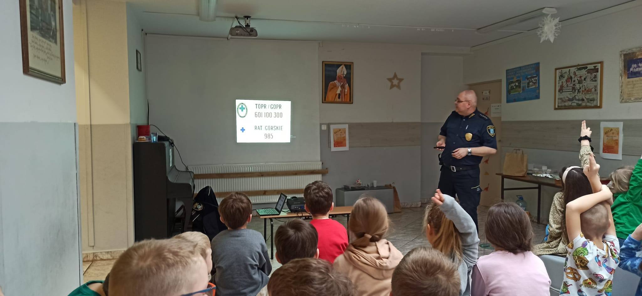Uczniowie naszej szkoły spotkali się z przedstawicielami Straży Miejskiej 🚓 oraz Komendy Powiatowej Policji 👮♂️👮♀️, aby porozmawiać o bezpieczeństwie podczas ferii zimowych! ❄️⛸️