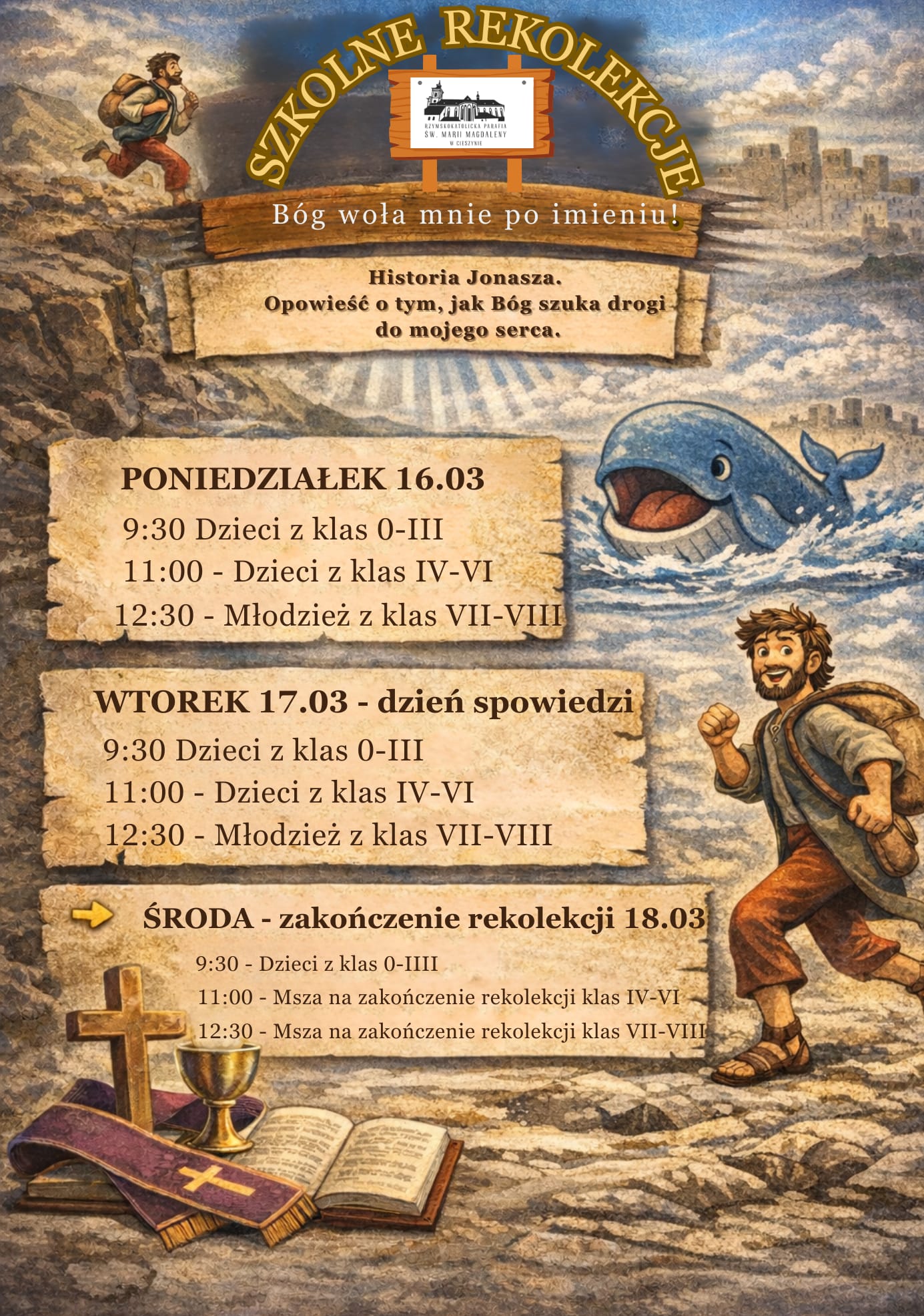 Tematem tegorocznych rekolekcji będzie historia Jonasza: „Bóg zna mnie po imieniu. Historia o tym, jak Bóg szuka drogi do naszego serca.”