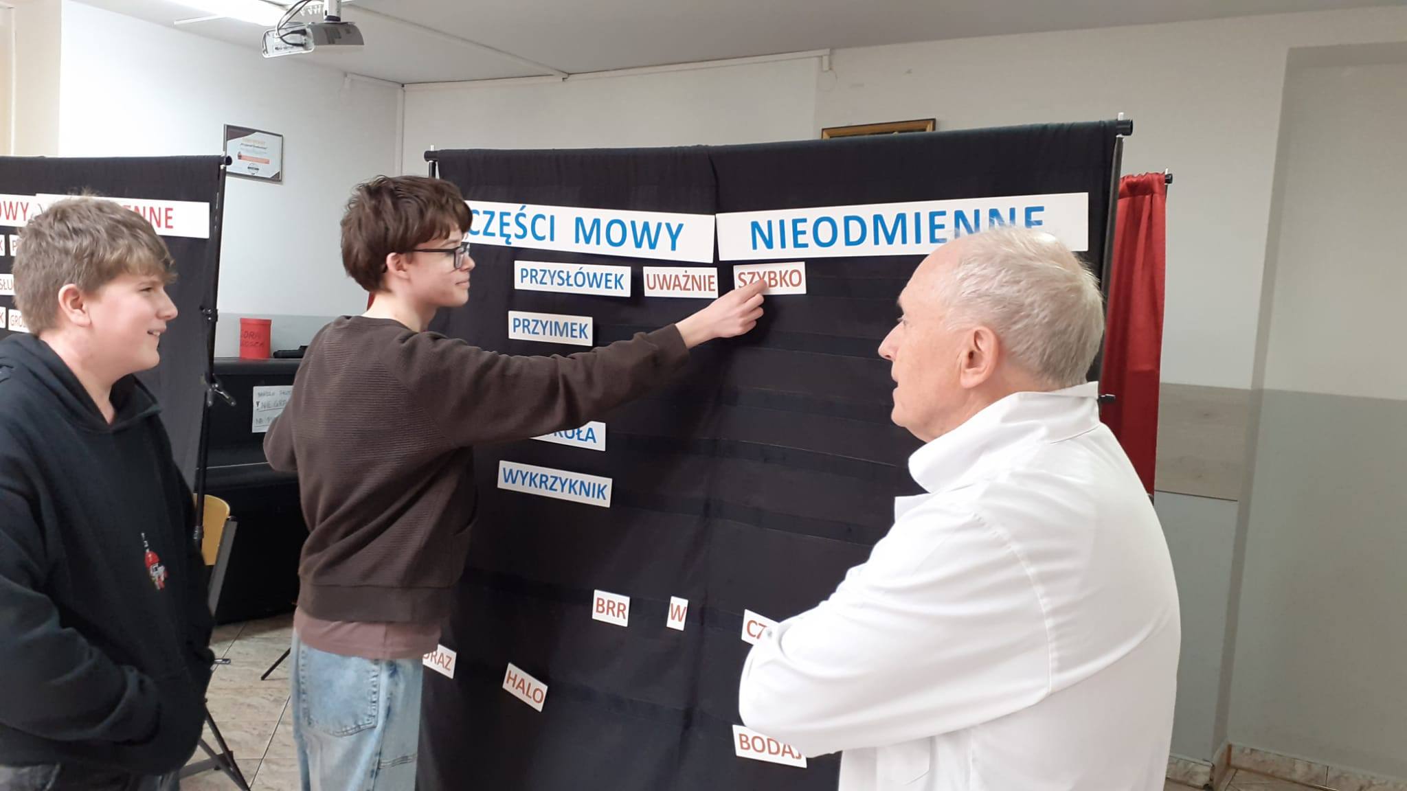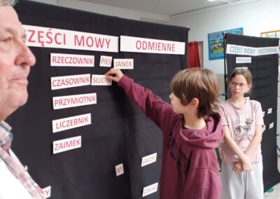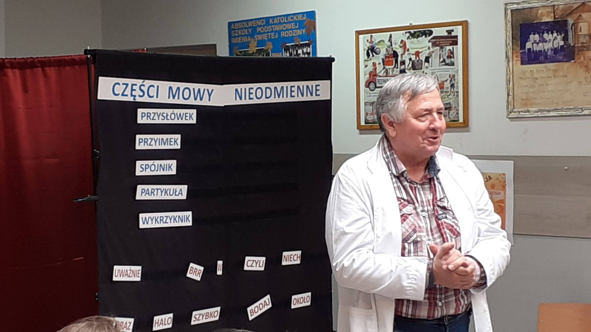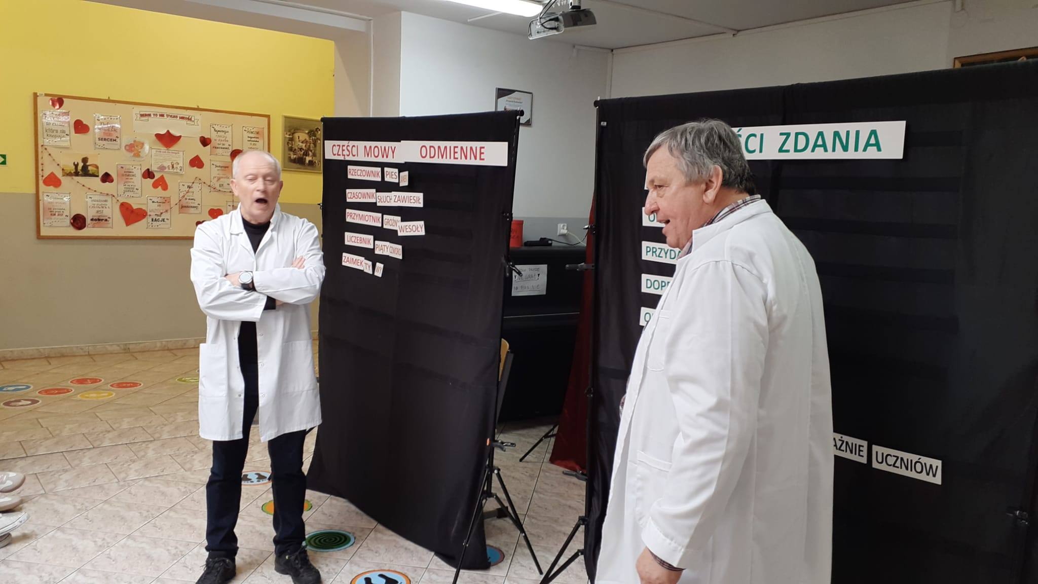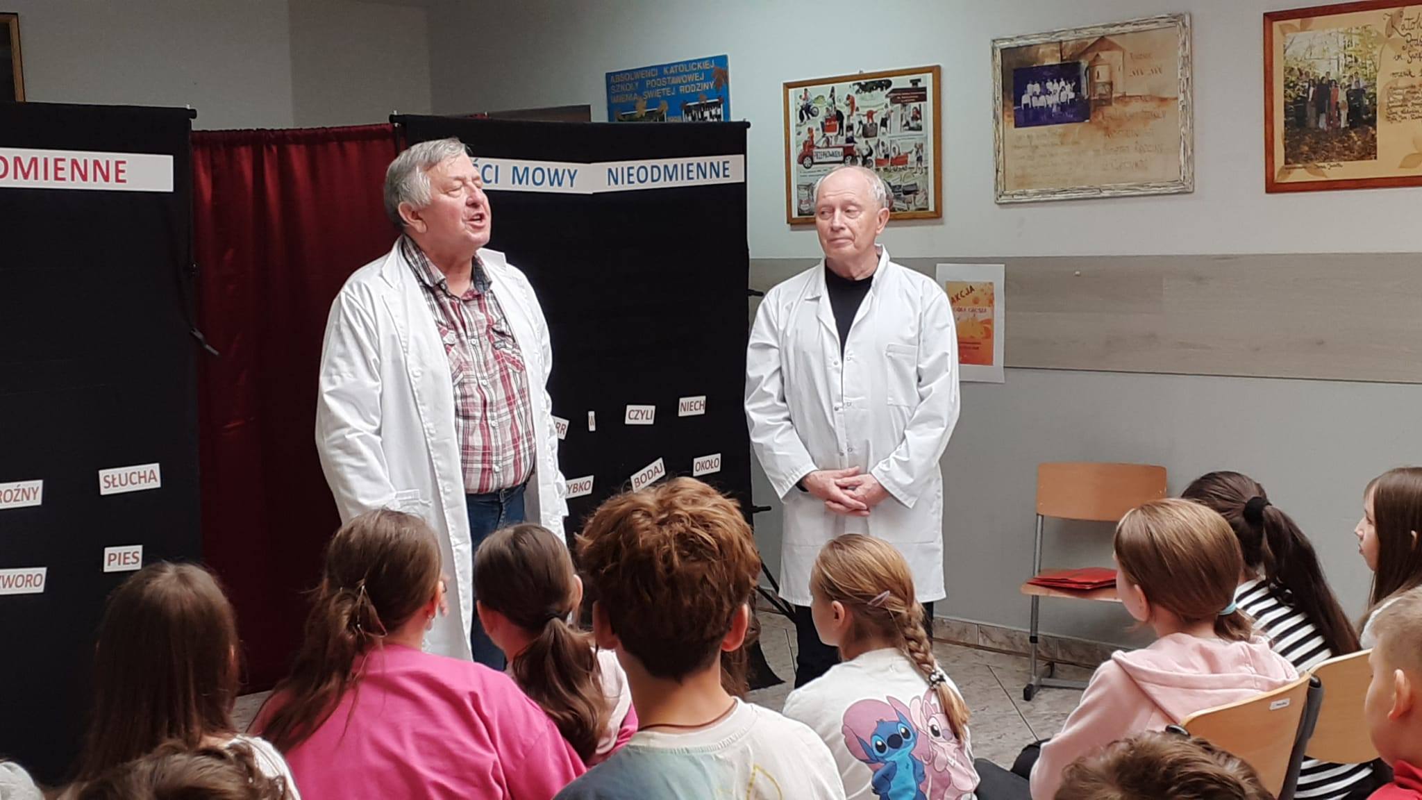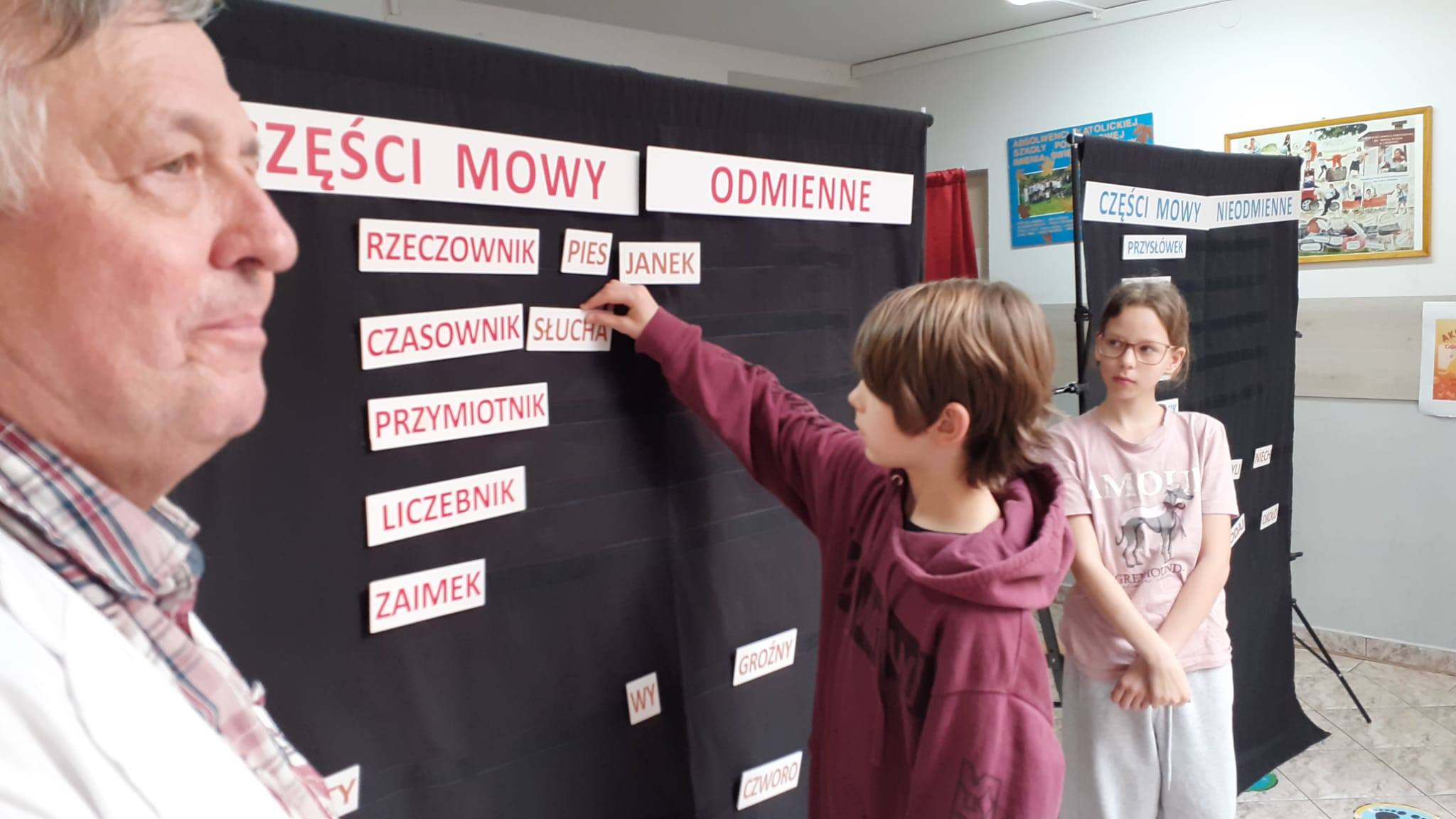 Oczywiście, zwłaszcza, gdy opowiadają o niej aktorzy scen krakowskich: Jacek Lecznar i Wojciech Habela.🤩 Panowie odwiedzili naszą szkołę, aby razem z uczniami klas IV – VIII odkrywać sekrety części mowy i zdania. Wiele radości sprawiły uczestnikom warsztatów także wiersze znanych poetów, których recytacja ubogaciła gramatyczne rozważania.
