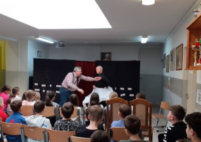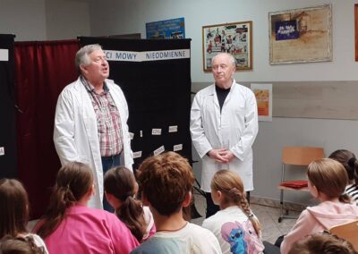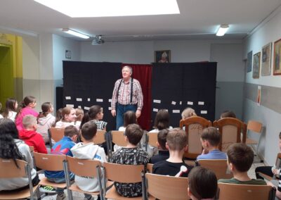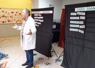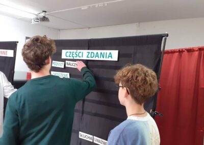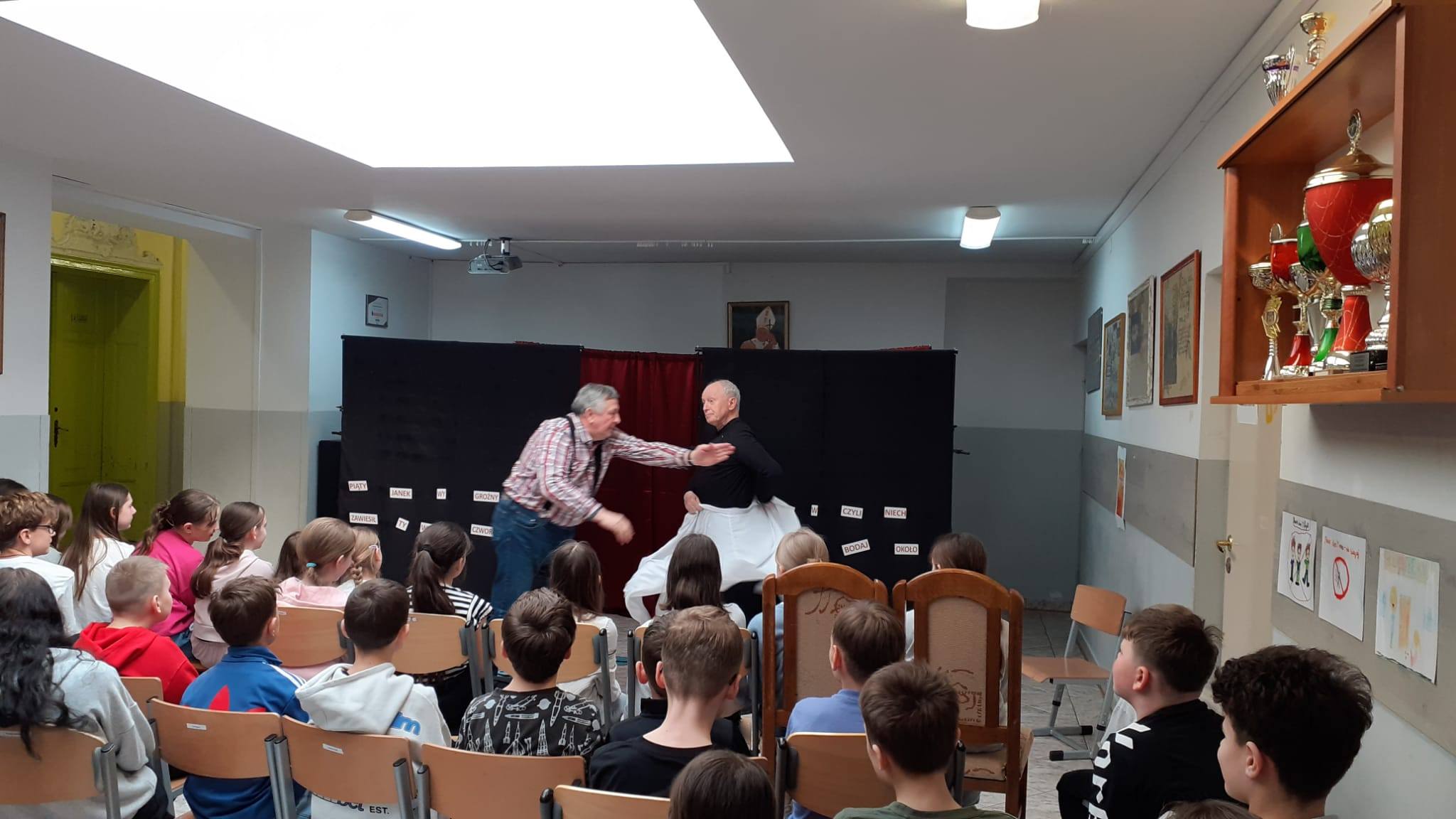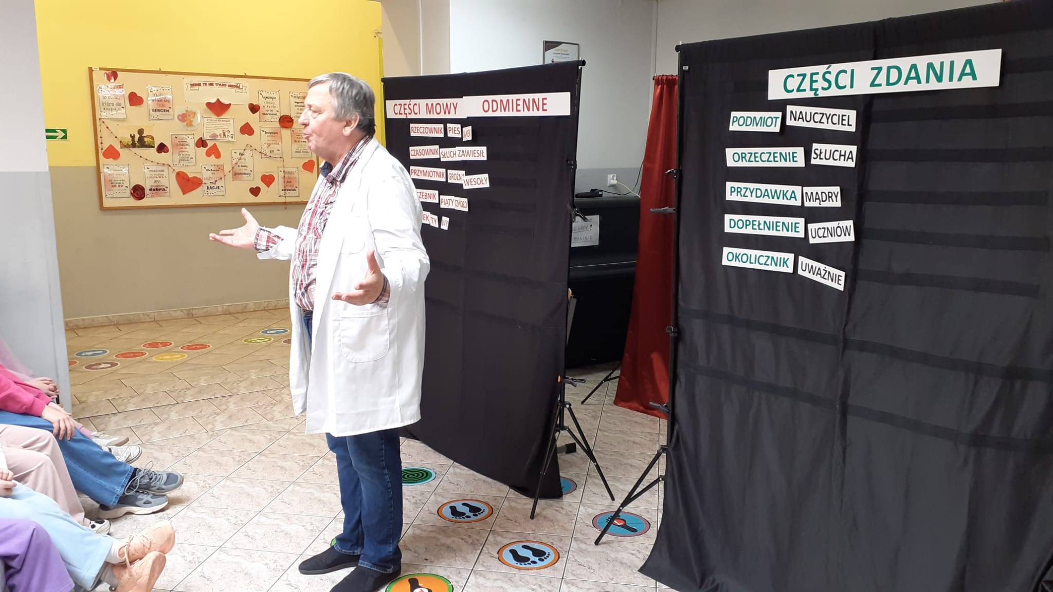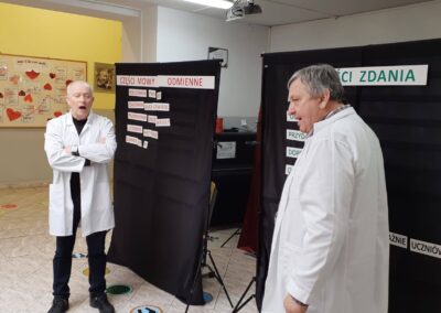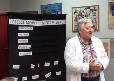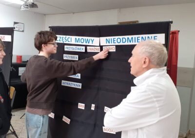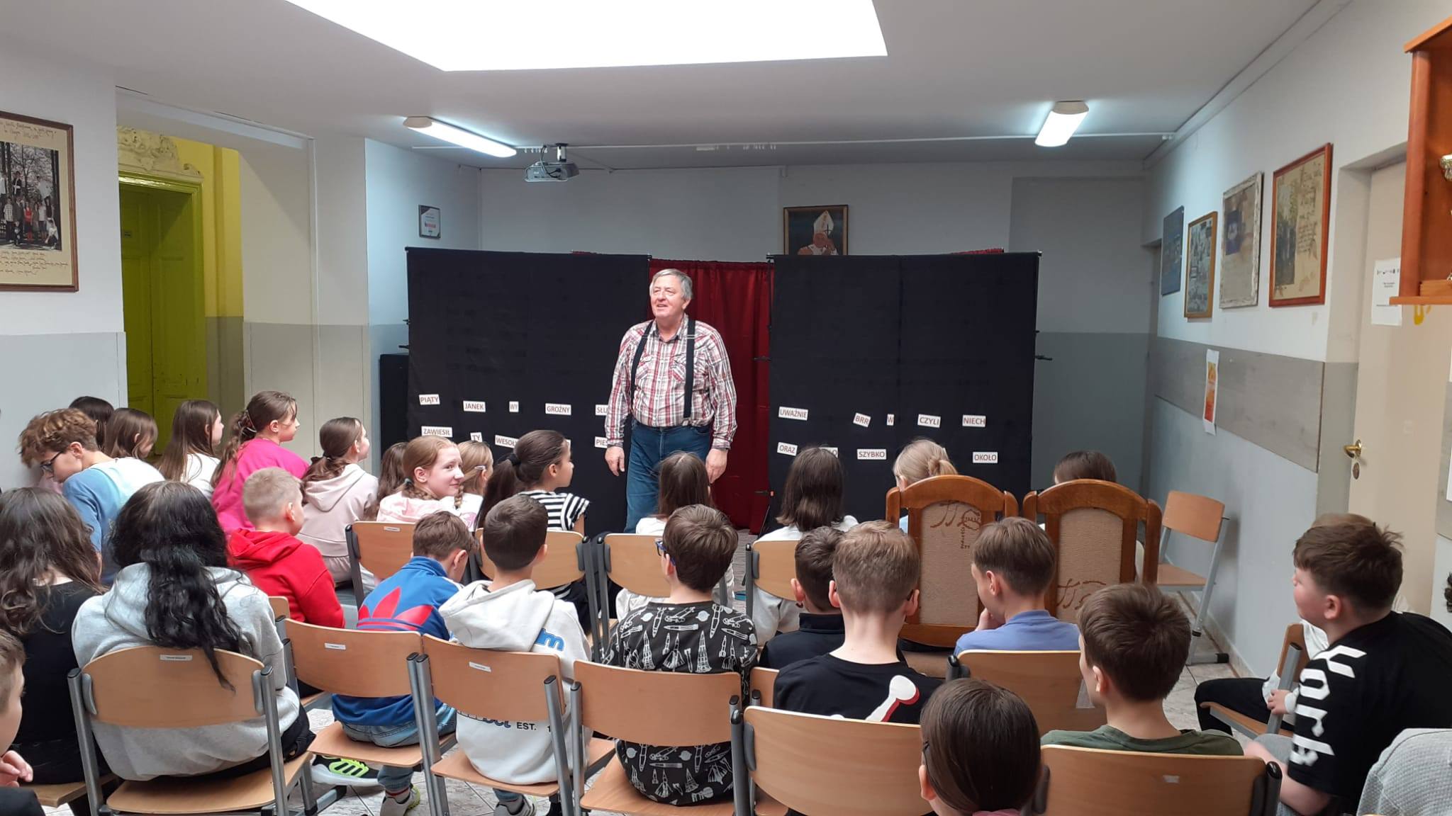 Oczywiście, zwłaszcza, gdy opowiadają o niej aktorzy scen krakowskich: Jacek Lecznar i Wojciech Habela.🤩 Panowie odwiedzili naszą szkołę, aby razem z uczniami klas IV – VIII odkrywać sekrety części mowy i zdania. Wiele radości sprawiły uczestnikom warsztatów także wiersze znanych poetów, których recytacja ubogaciła gramatyczne rozważania.